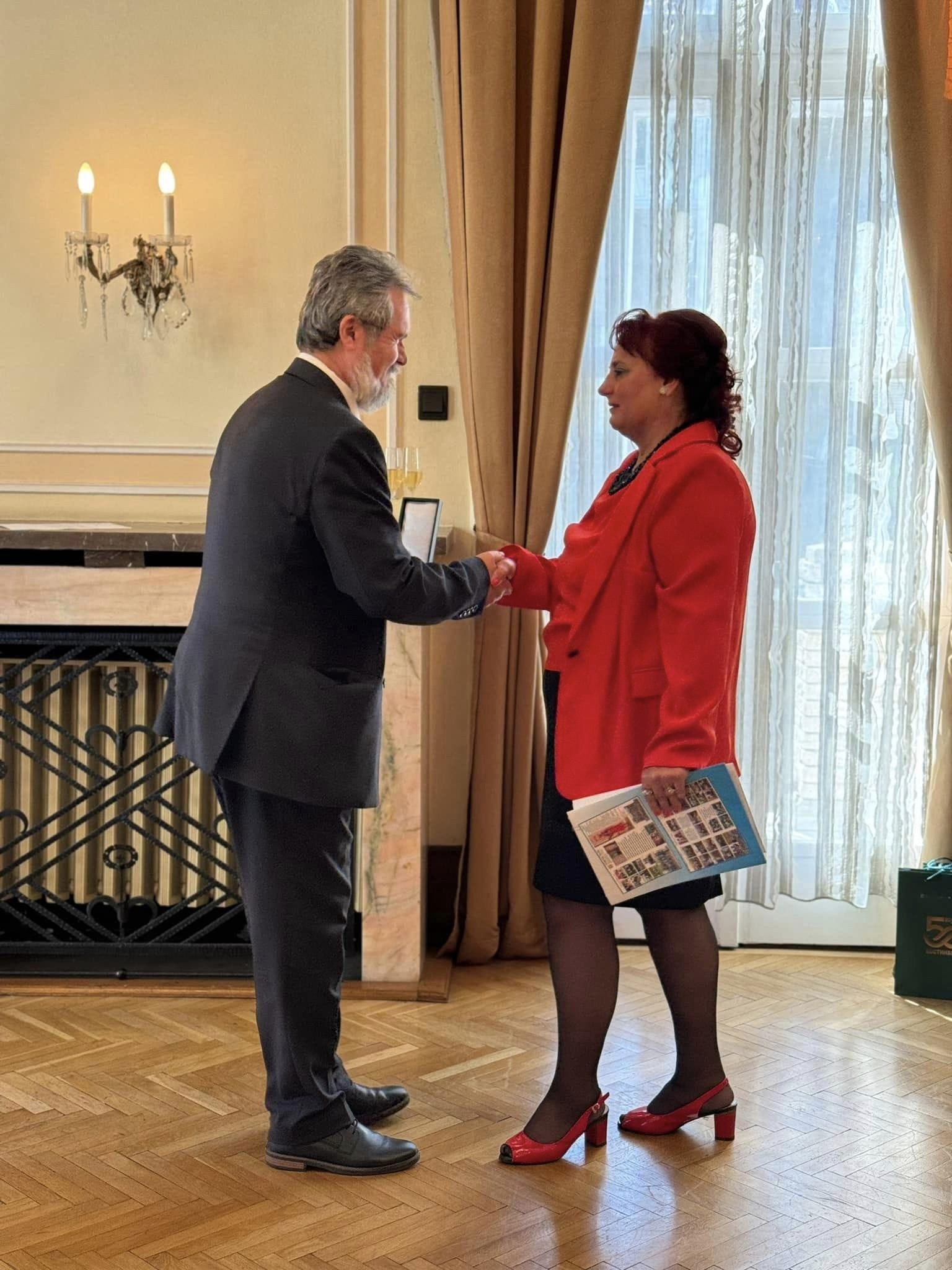 Наградата бе връчена от посланик Миклош Борош на церемония в Посолството на Унгария.